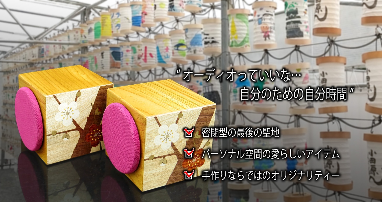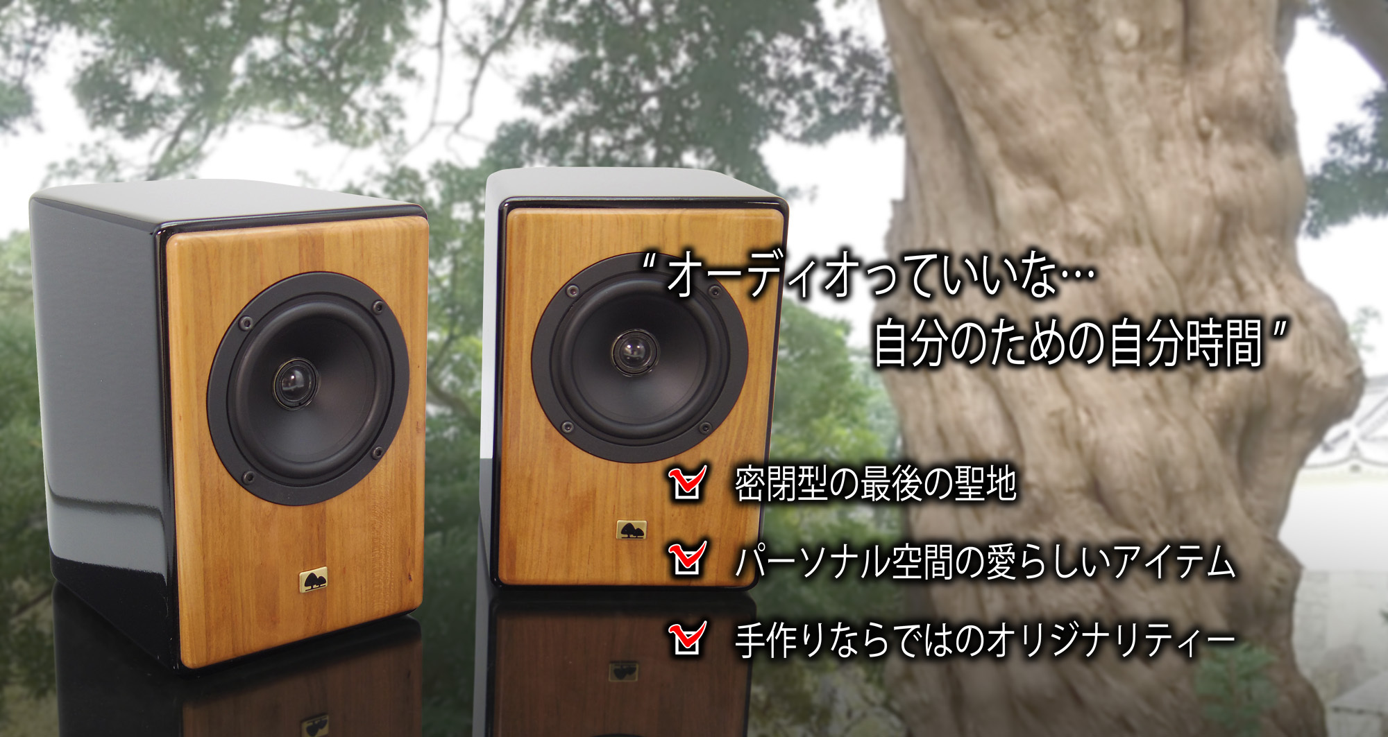 私たちは、音楽と、木の風合いを活かした美しいデザイン、そして自然で優しい音作りをこだわりを持って目指しています。