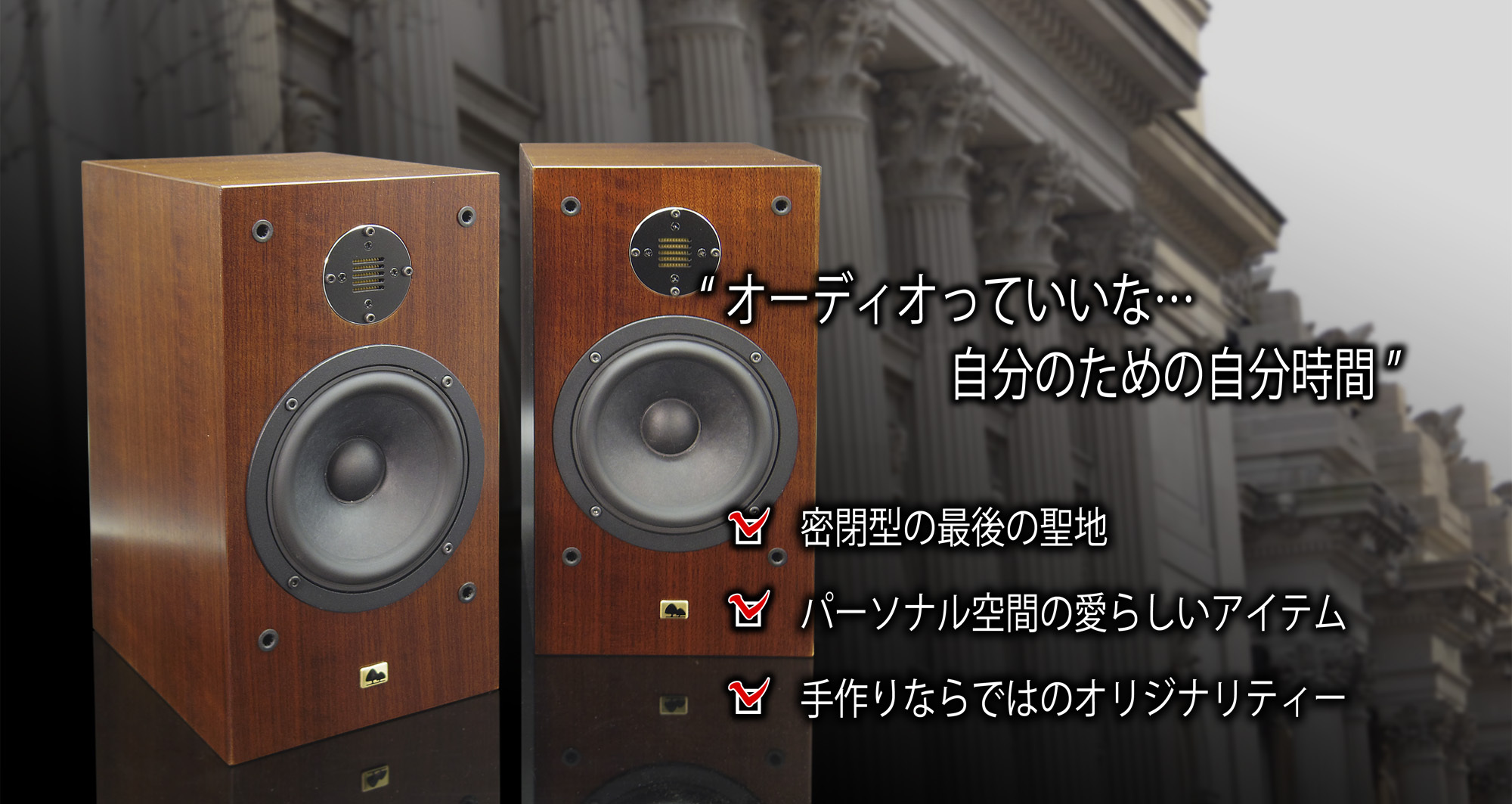 これらの良い所を合わせたいと始めたのが私たちです。こだわりの有る方々へ、真っすぐオリジナルスピーカーだけを製造販売している個人事業者です。