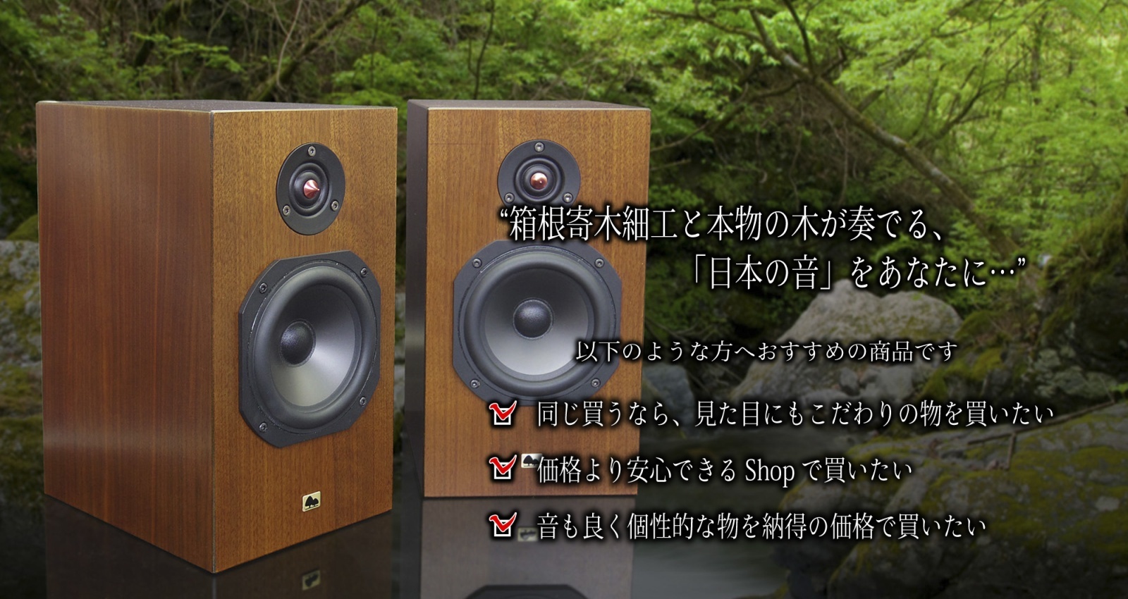 私たちは、音楽と、木の風合いを活かした美しいデザイン、そして自然で優しい音作りをこだわりを持って目指しています。