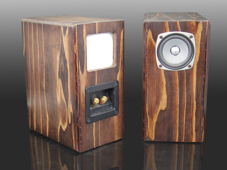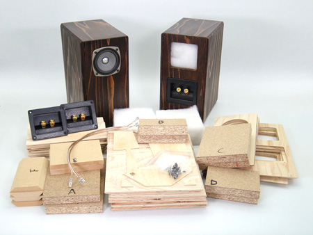 8cm程度のスピーカーユニットは、DIYスピーカーを楽しまれるユーザーも多く、扱い易いサイズから多くのメーカーが販売しており、ユーザーがそれらのスピーカーユニットを保持している場合が多く見られます。その為のエンクロージャーとして、単純なバスレフは市場で多く見られますが、DIYの経験者では作る楽しみを満足させられない事も有ります。音響的に詳しいユーザーであれば、内部構造への関心、あるいは各自で手を加えたい方に都合が良いパッケージになっています。素材は響きに有利な針葉樹合板を用い、ラワン合板やMDF素材とは異なる趣を持たせています。同程度のスピーカーユニットであれば対応が可能な為、あえてスピーカーユニットを付属しない仕様にしています。